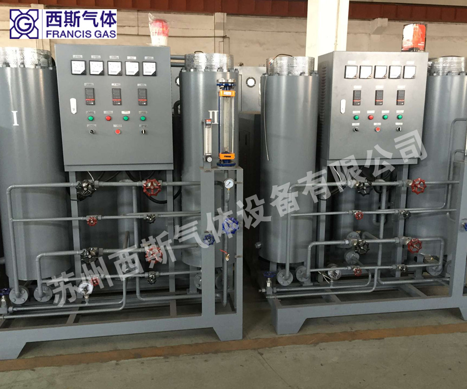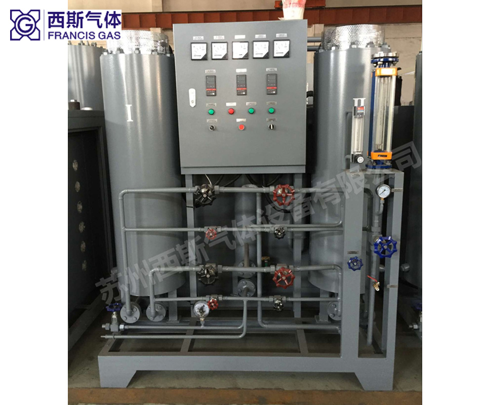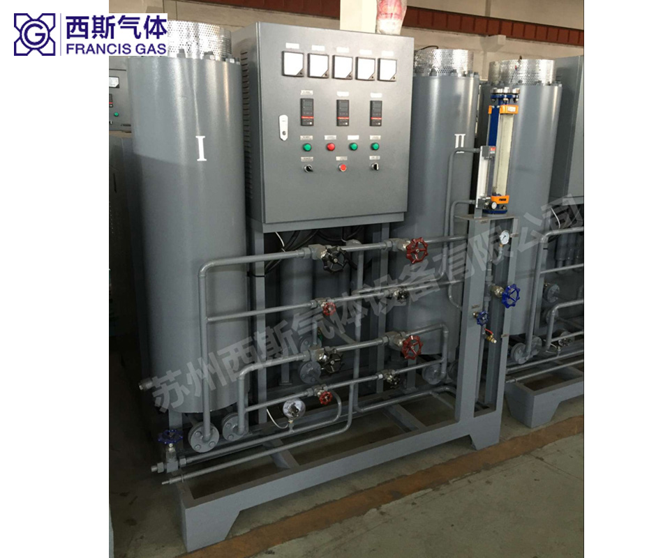 純化器:主要有除氧器(對(duì)氣氛含氧量有特殊要求的客戶選用)、冷卻器、分子篩吸附干燥器和閥門組、電氣控制等組成。